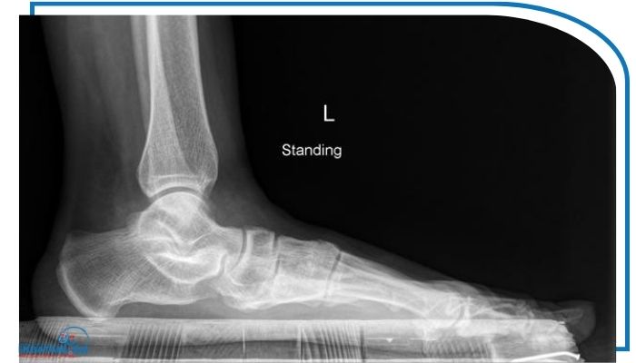 در مواردی که شدت تغییرات بیشتر باشد یا پزشک بخواهد محور استخوانی پا و زانو را با دقت بیشتری ارزیابی کند از روشهای عکس انحراف زانو مانند اشعه X یا MRI استفاده میشود. رادیوگرافی معمولاً در حالت ایستاده انجام میشود تا زاویه بین استخوان ران و ساق بهوضوح مشخص گردد. اگر در تصویرزانوها به سمت داخل متمایل باشند نشاندهنده ژنووالگوس یا همان زانوی ضربدری است و در صورت خم شدن زانوها به سمت خارج وضعیت ژنوواروم (زانوی پرانتزی) دیده میشود. در برخی موارد نیزMRI برای بررسی دقیقتر غضروفها رباطها و مفاصل زانو انجام میشود تا اثرات ناشی از صافی کف پا بر ساختار داخلی زانو به طور کامل مشخص شود.